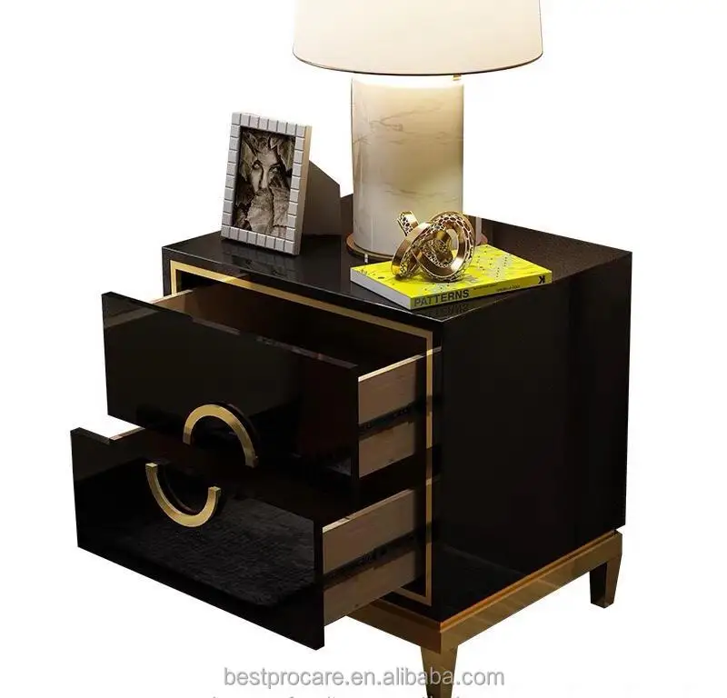 Modern bedside table home furniture European luxury style high-density board drawer bedside table