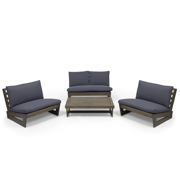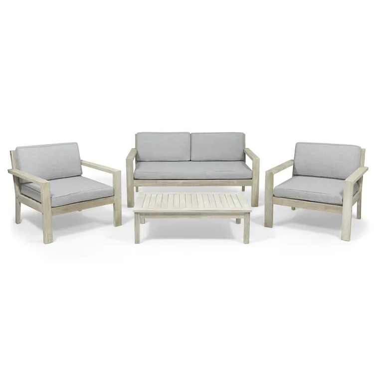 Free Shipping Within US Garden Outdoor 4 Seater Acacia Wood Chat Set with Cushions