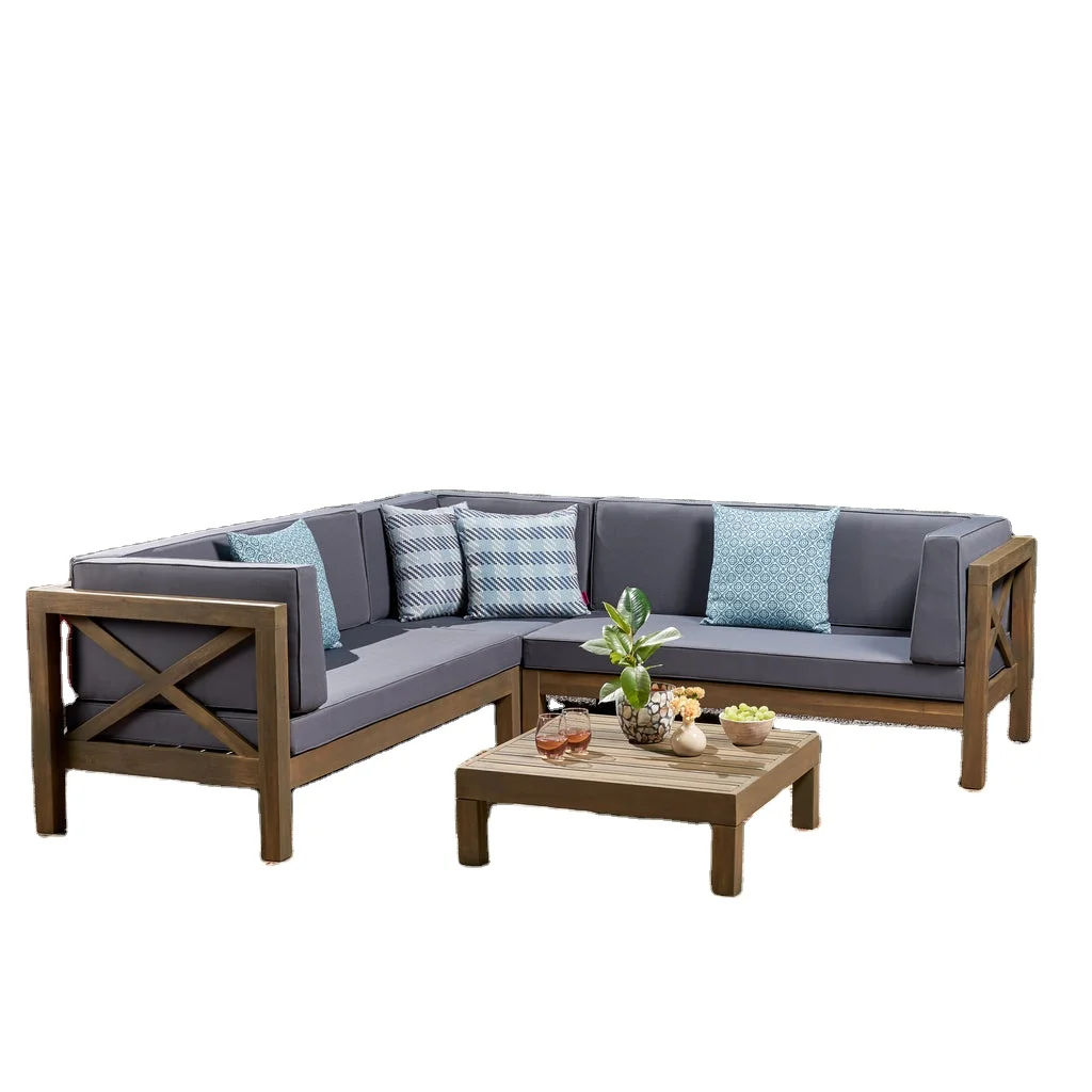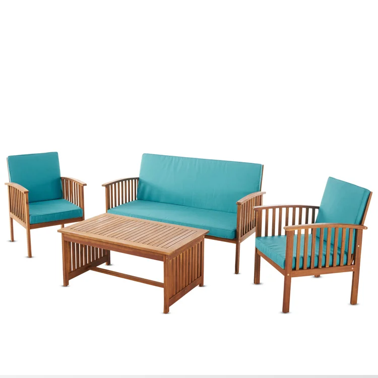 Free Shipping Within US Outdoor Garden 4 Piece Brown Patina Acacia Wood Sofa Set With Cushions
