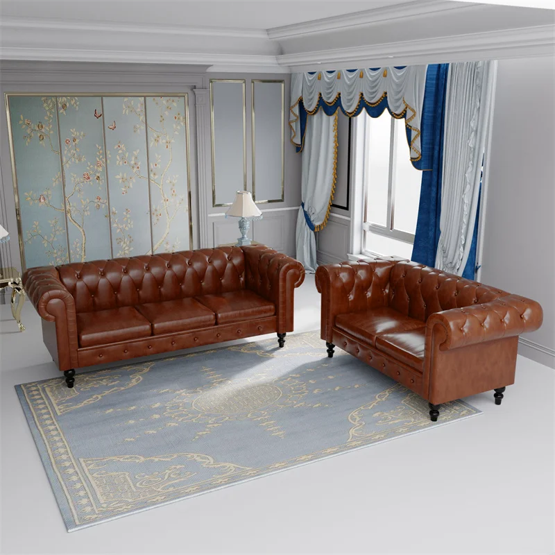 Unique vintage Style 3 Seater Sleeping Couch living room chesterfield leather sofa set furniture