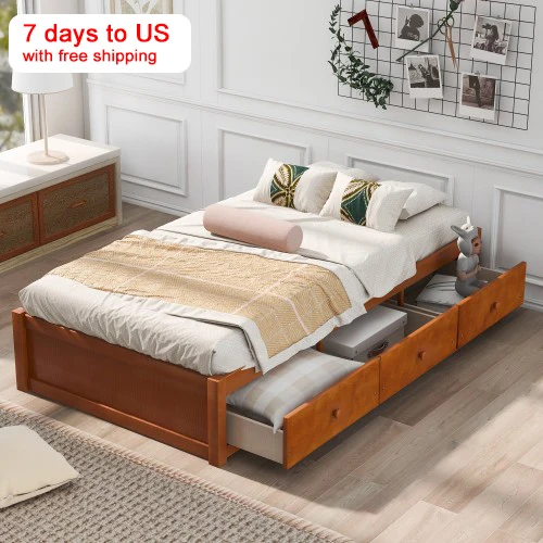 Bedroom Furniture Multifunction Twin Size Platform Storage Bed with 3 Drawers