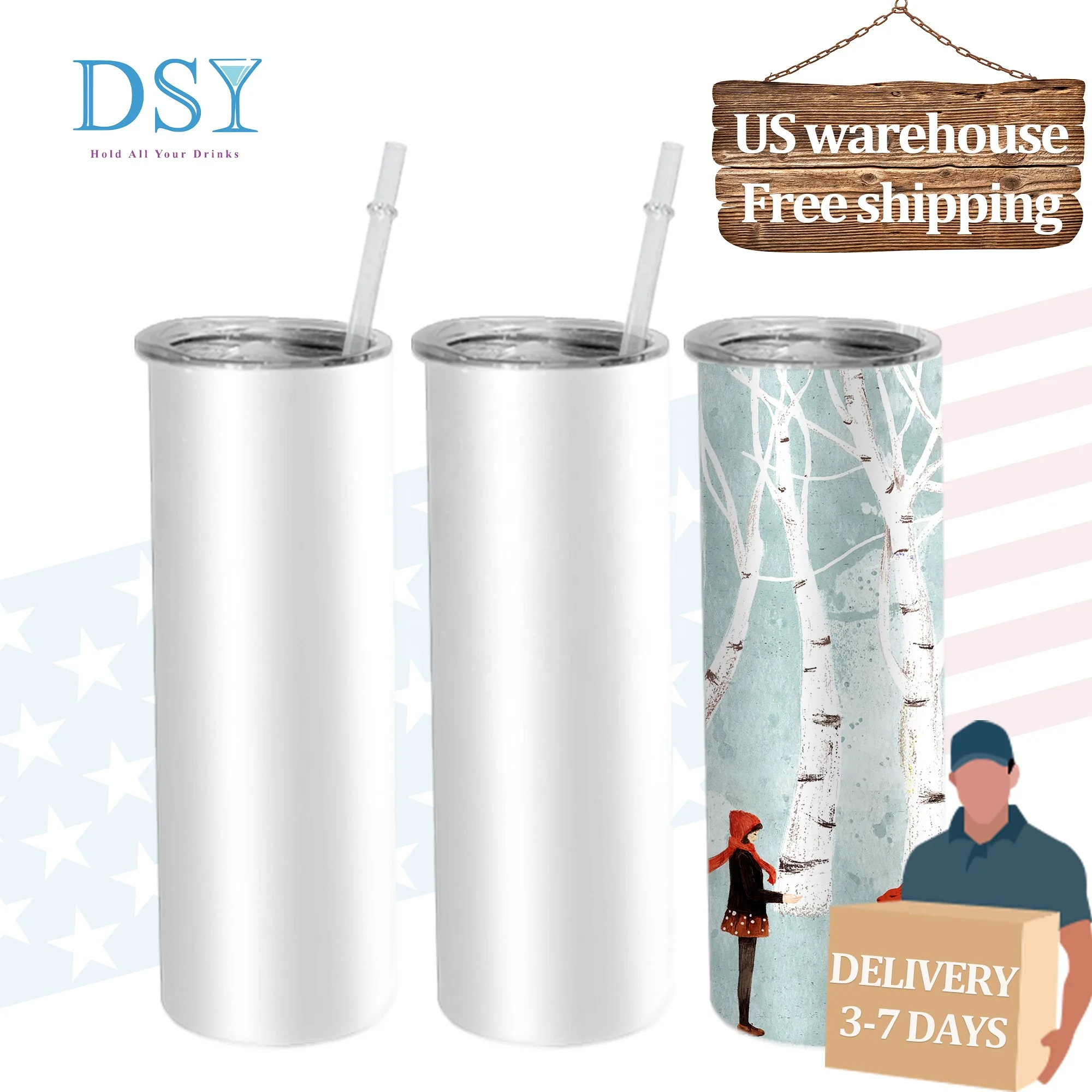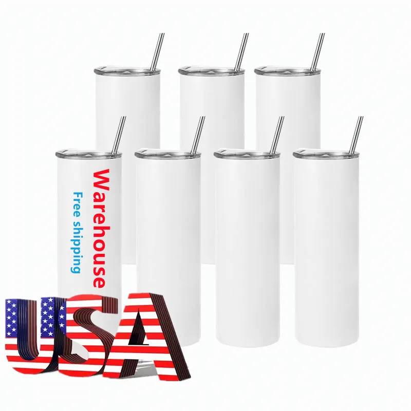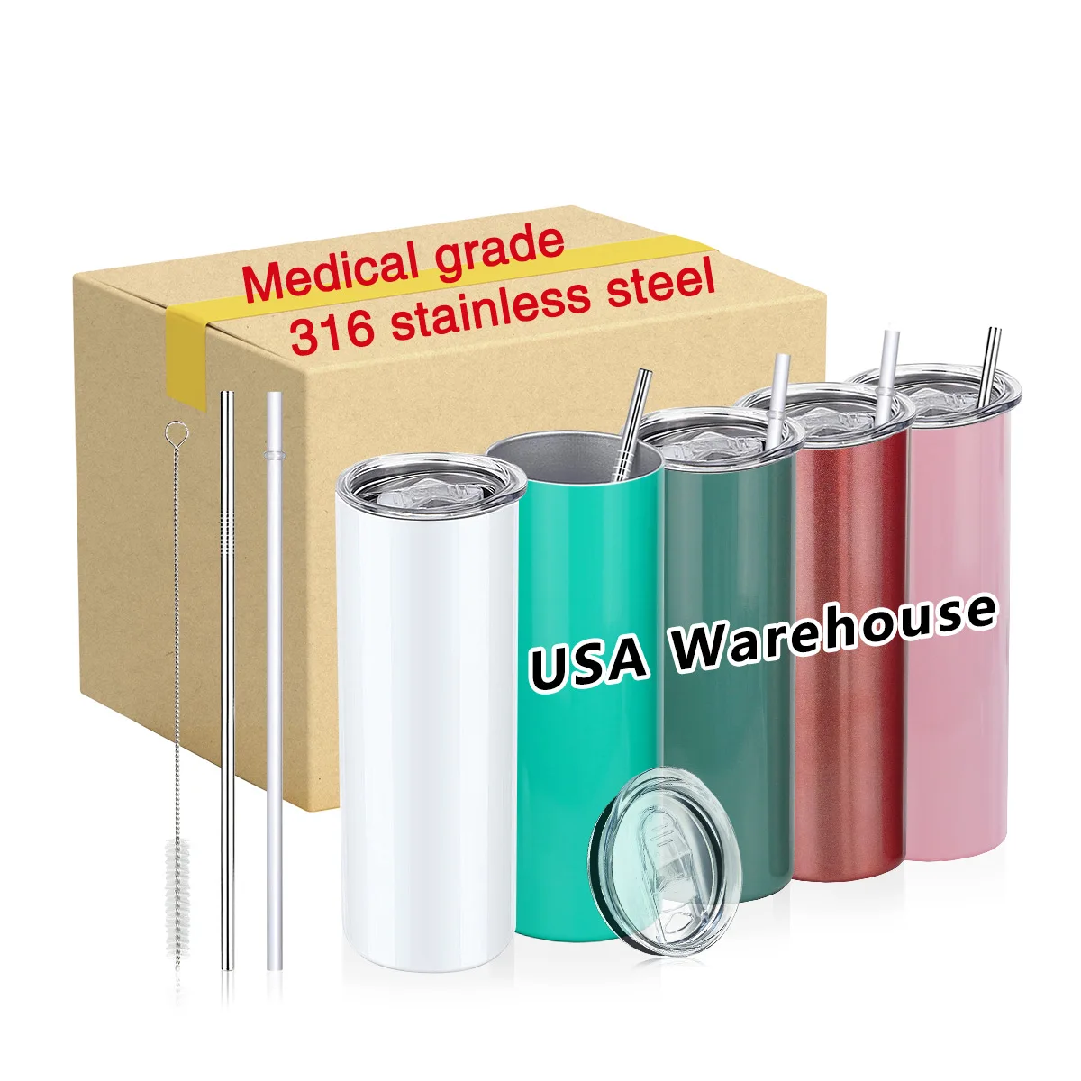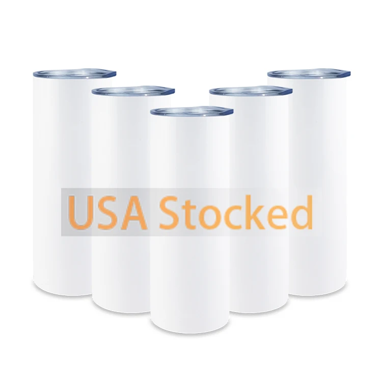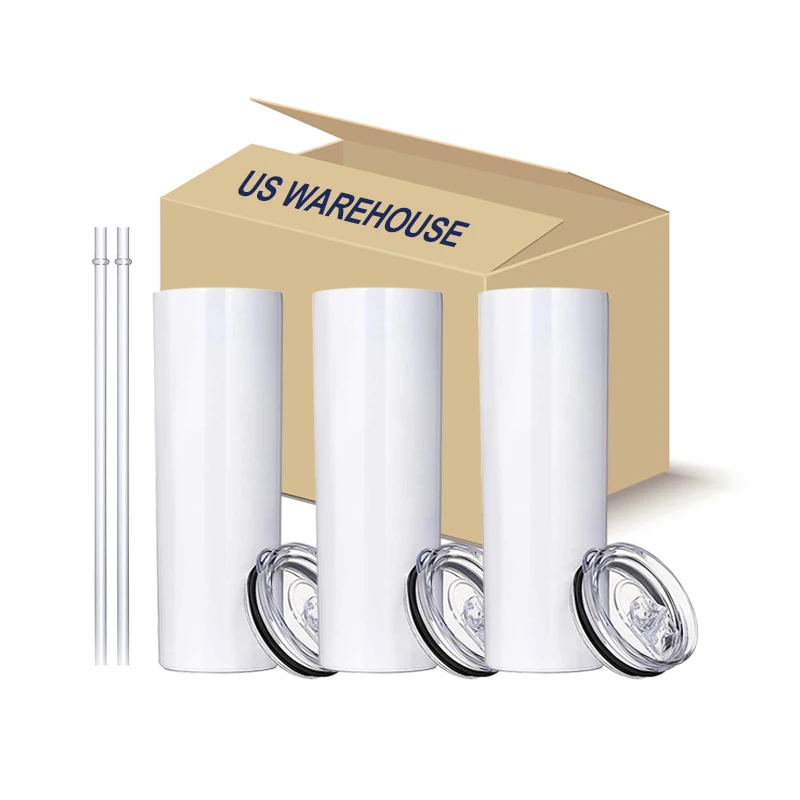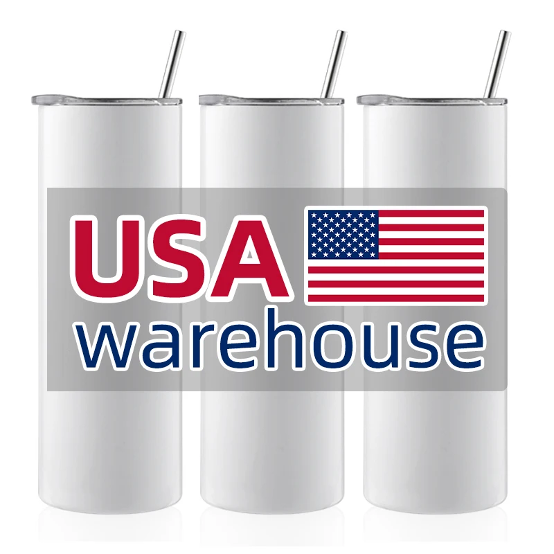 US Warehouse 20oz Sublimation Blanks Skinny Tumblers Double Wall Stainless Steel Vacuum Insulated Sublimation Straight Tumbler