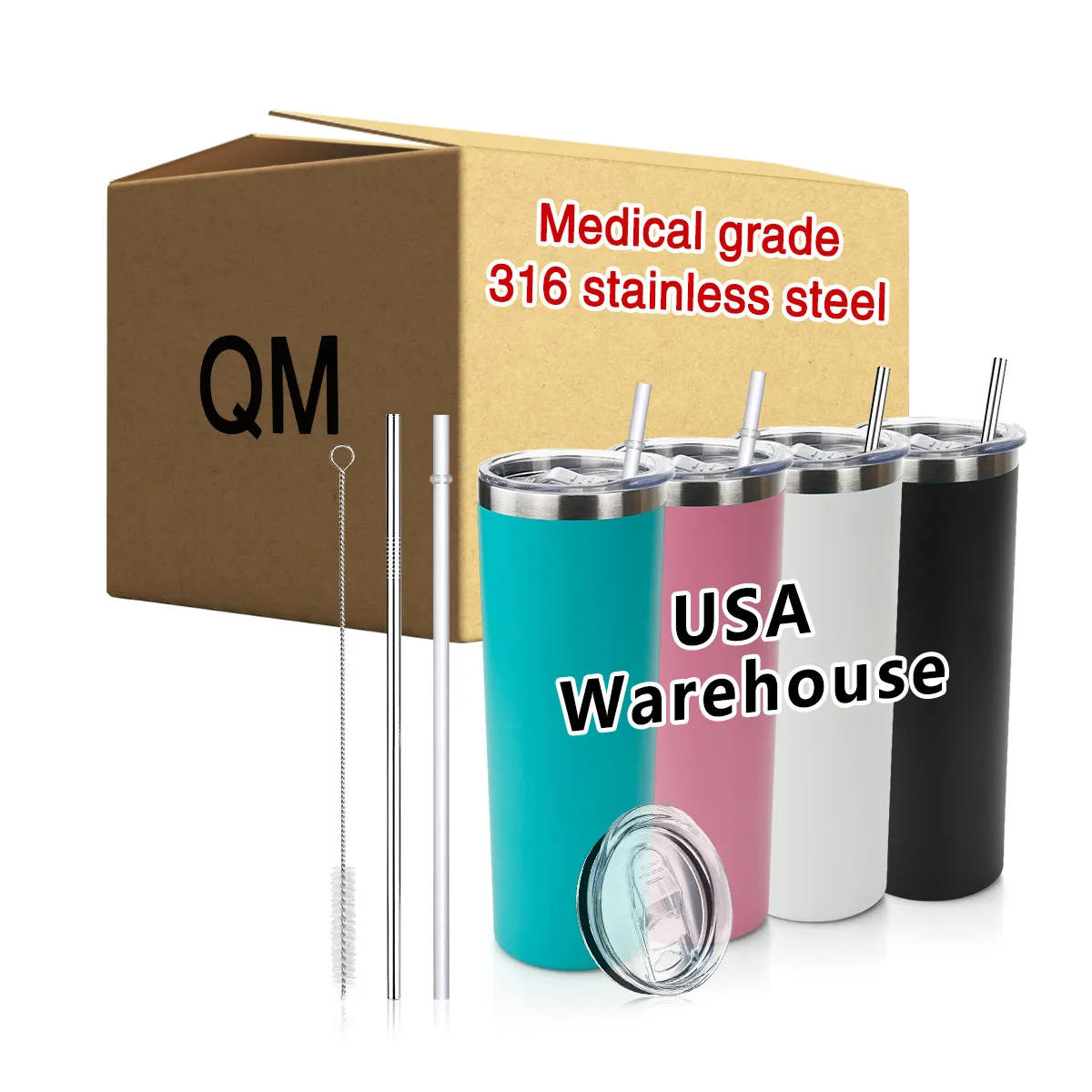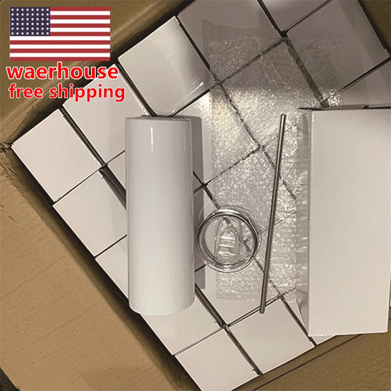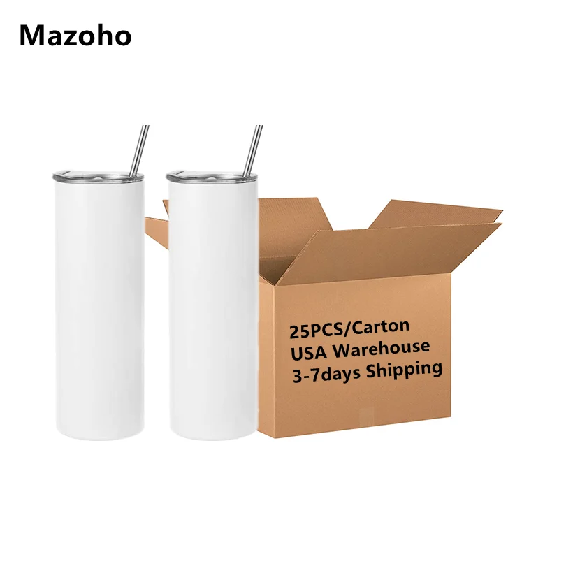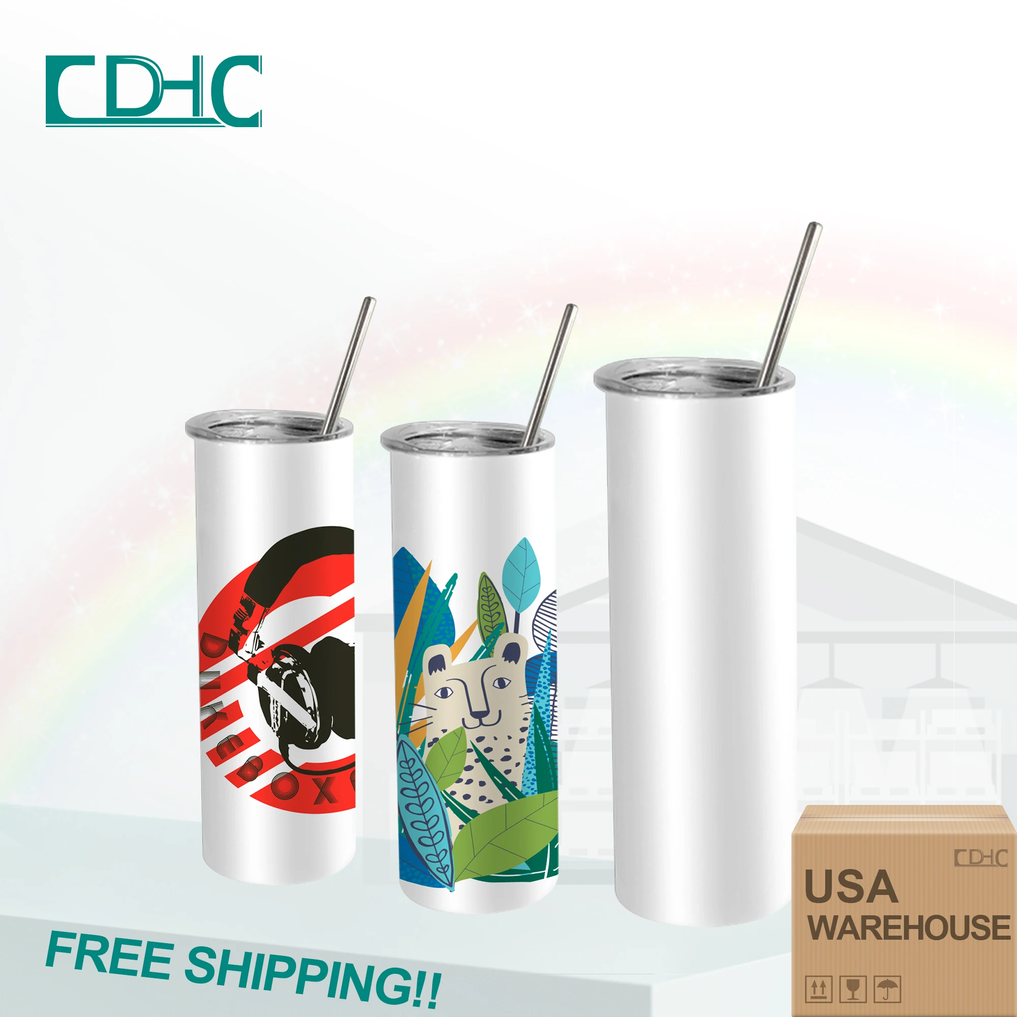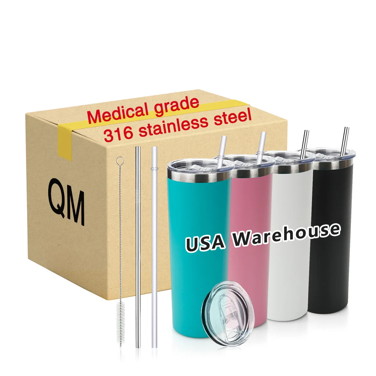 US Warehouse 20oz Sublimation Blanks Skinny Tumblers Double Wall Stainless Steel Vacuum Insulated Sublimation Straight Tumbler
