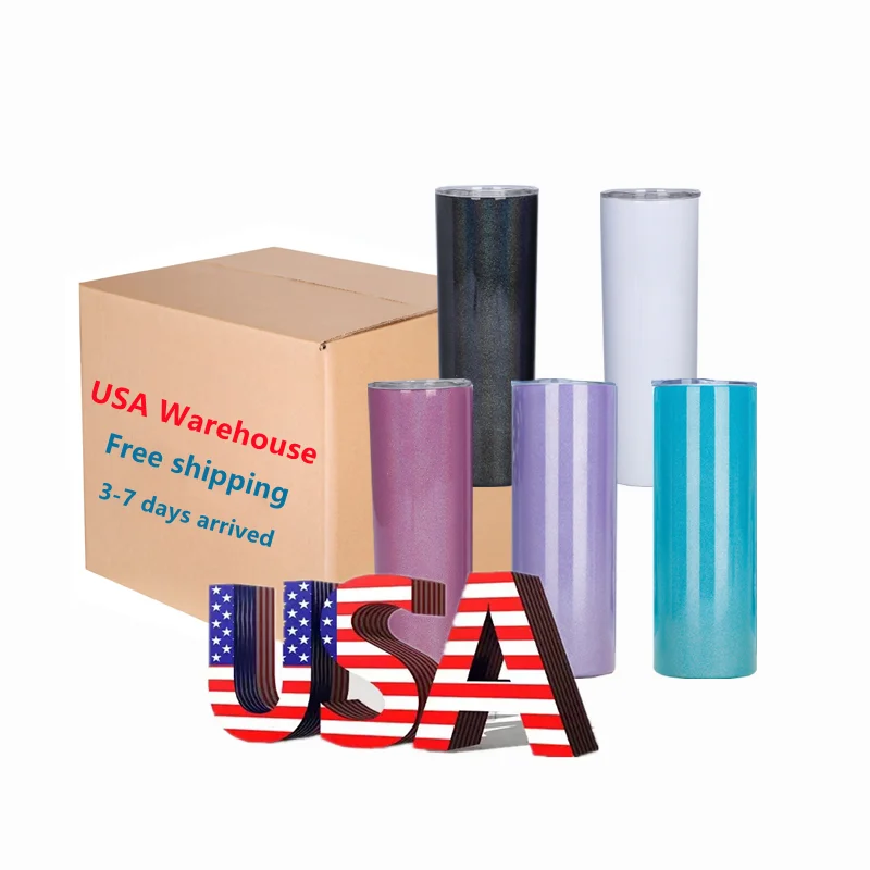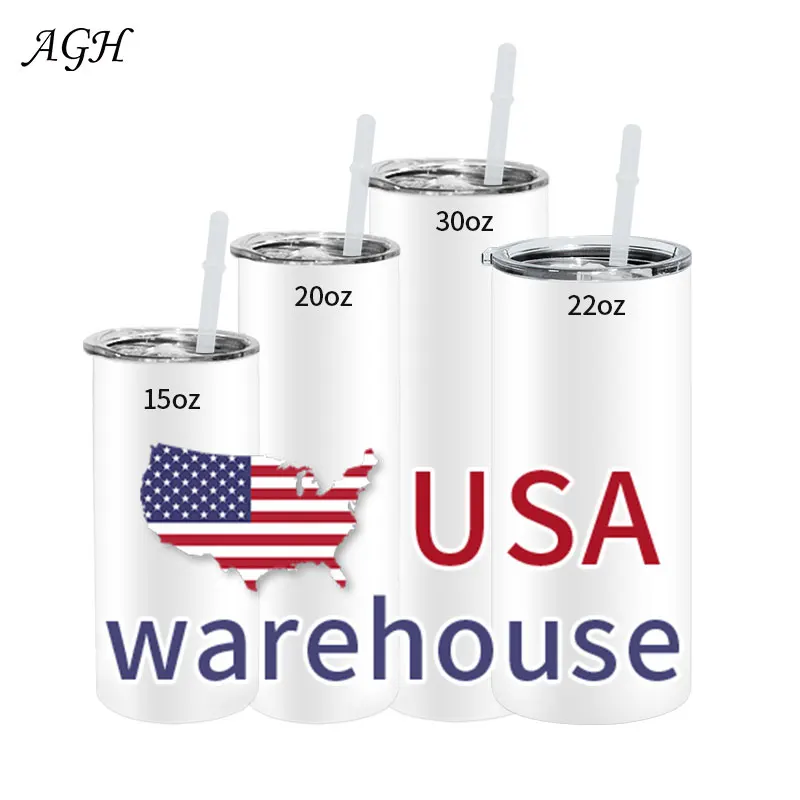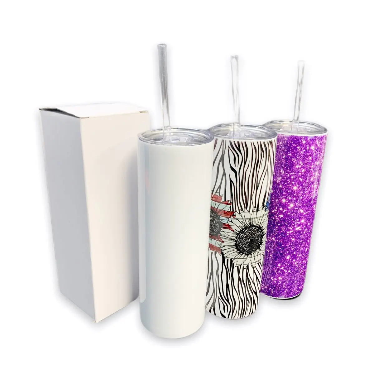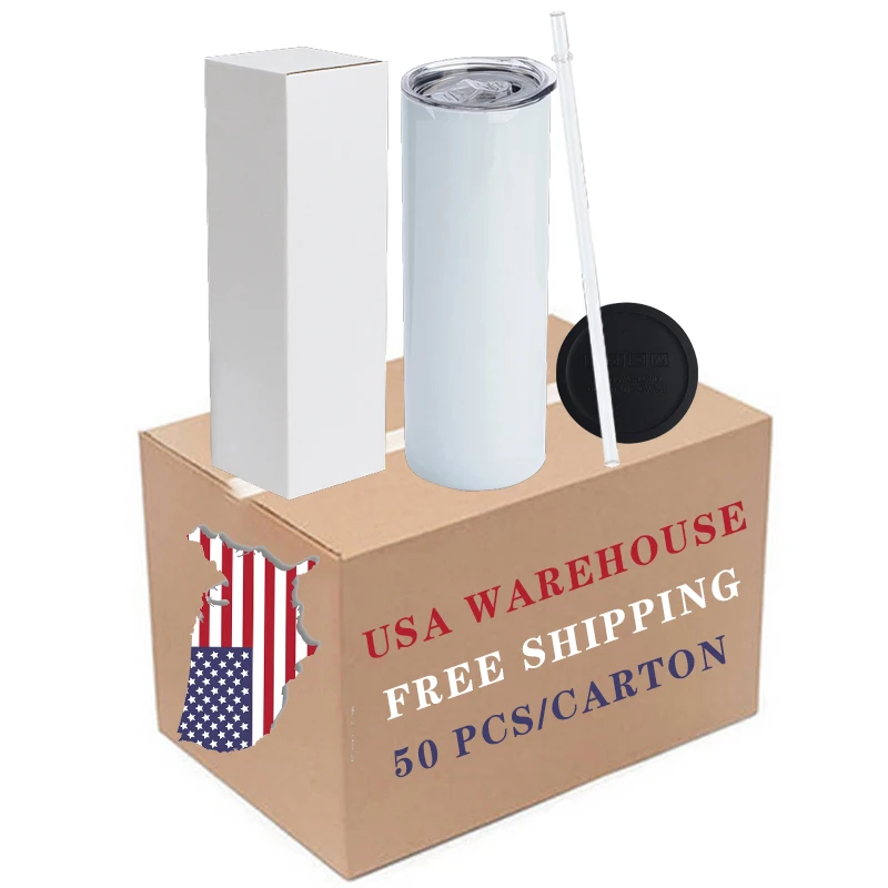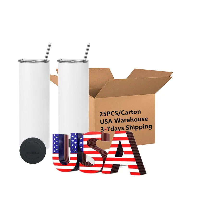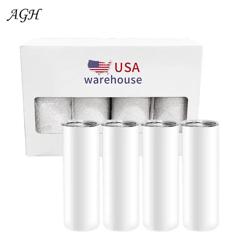 US Warehouse 20oz Sublimation Blanks Skinny Tumblers Double Wall Stainless Steel Vacuum Insulated Sublimation Straight Tumbler