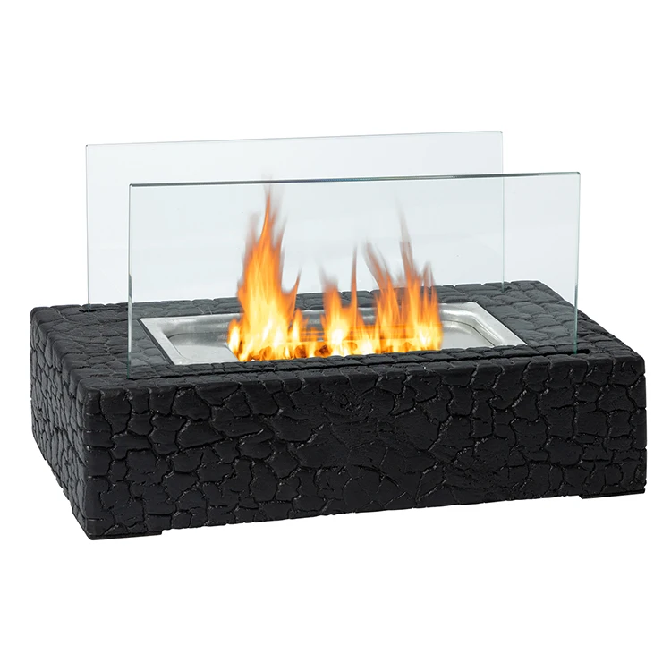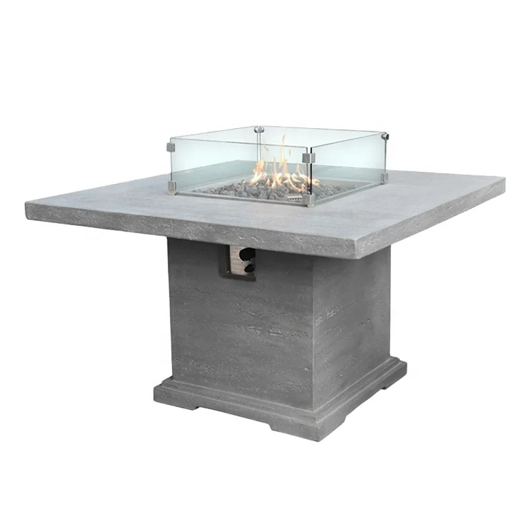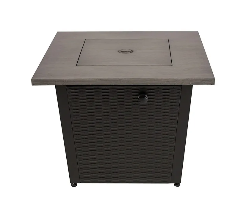 USA Stock Gray Wood Grain Table Top with Lid Square Outdoor Propane Fire Pits