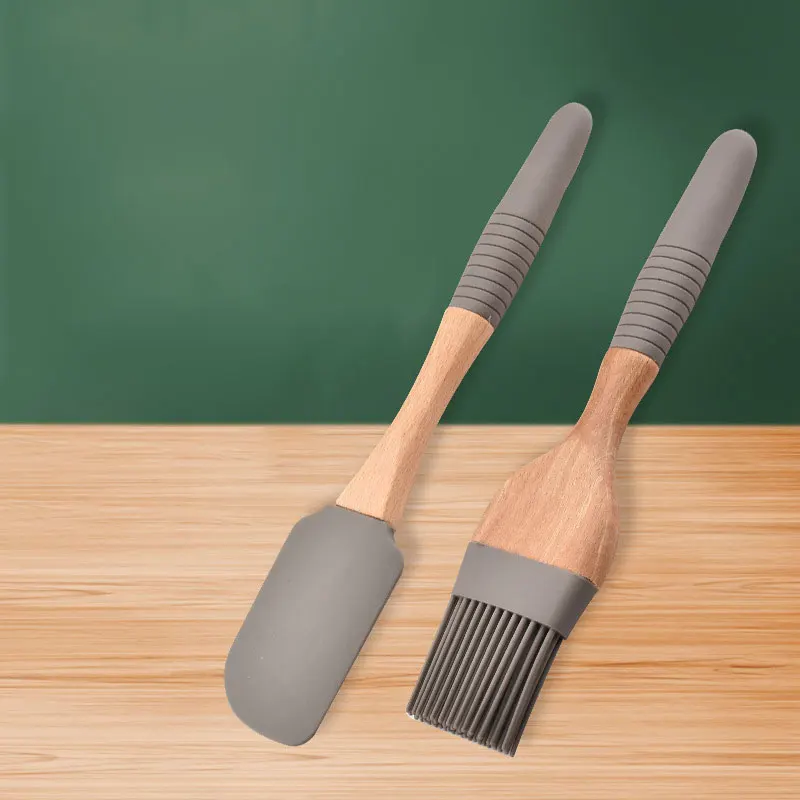 Silicon Basting Brush,Wooden handle High Temperature Resistance Silicone Grill Brush Soft Bristles Kitchen Silicon Brush