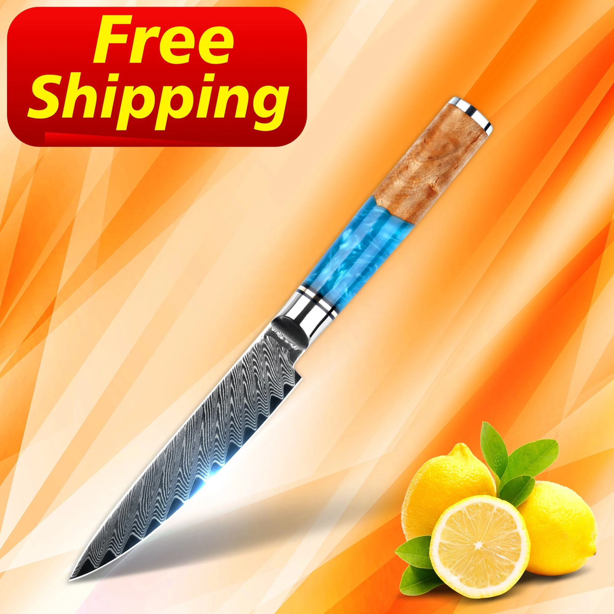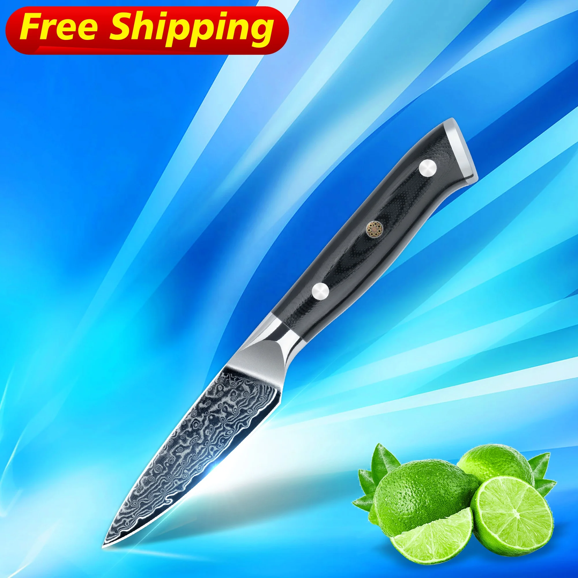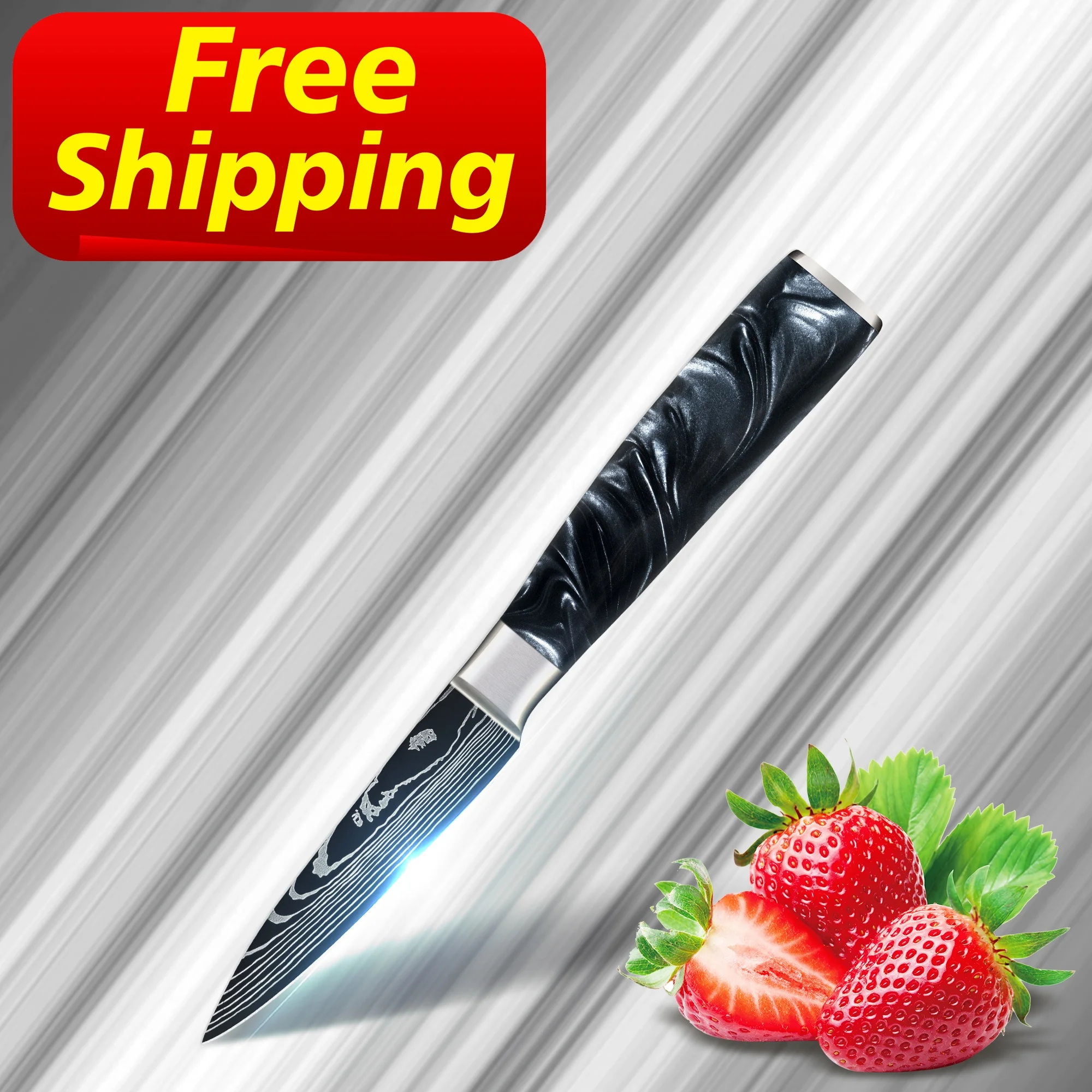 Free Shipping Obsidian Black Resin 3 inch damascus small cleaver chef paring knife kitchen carving vegetable knife peeling