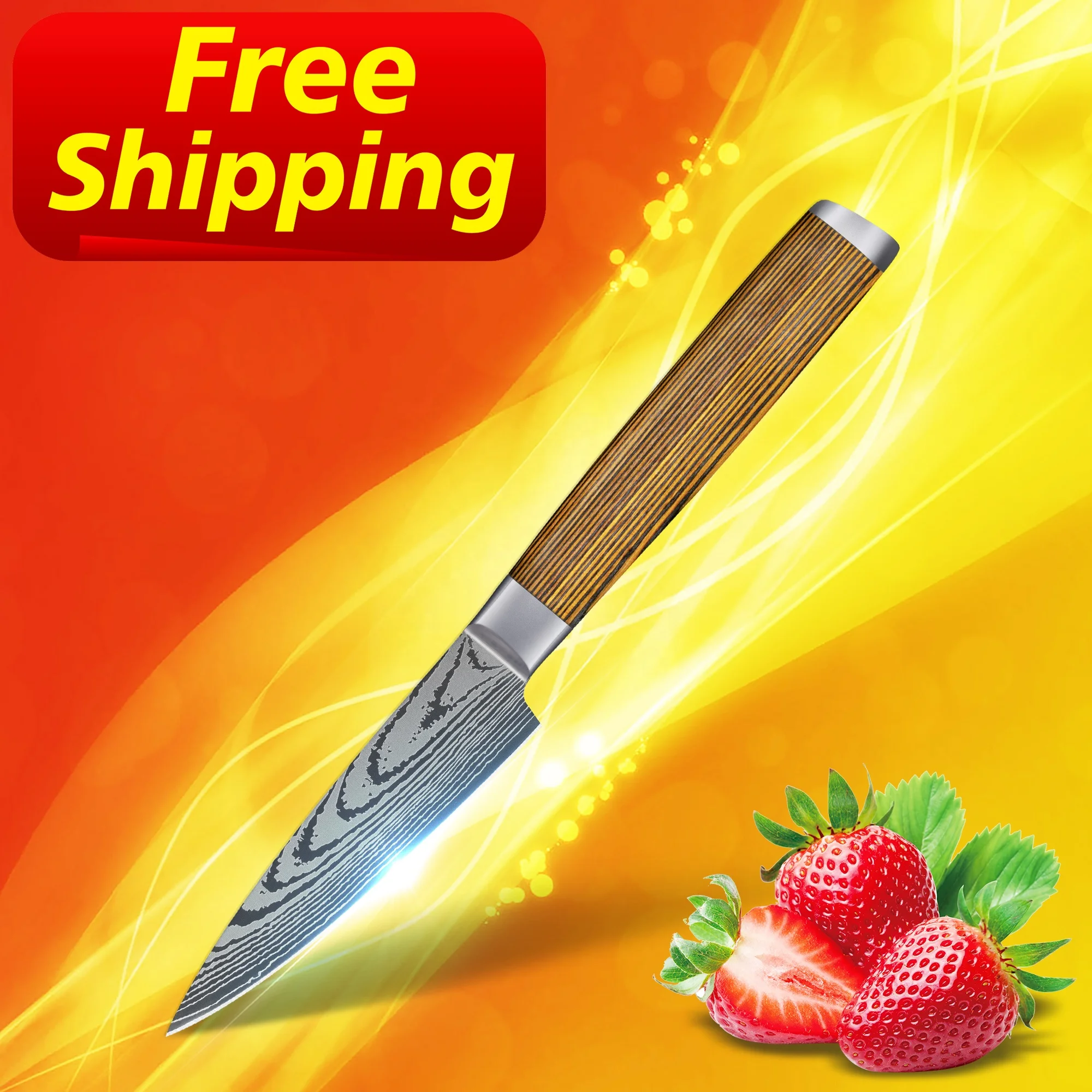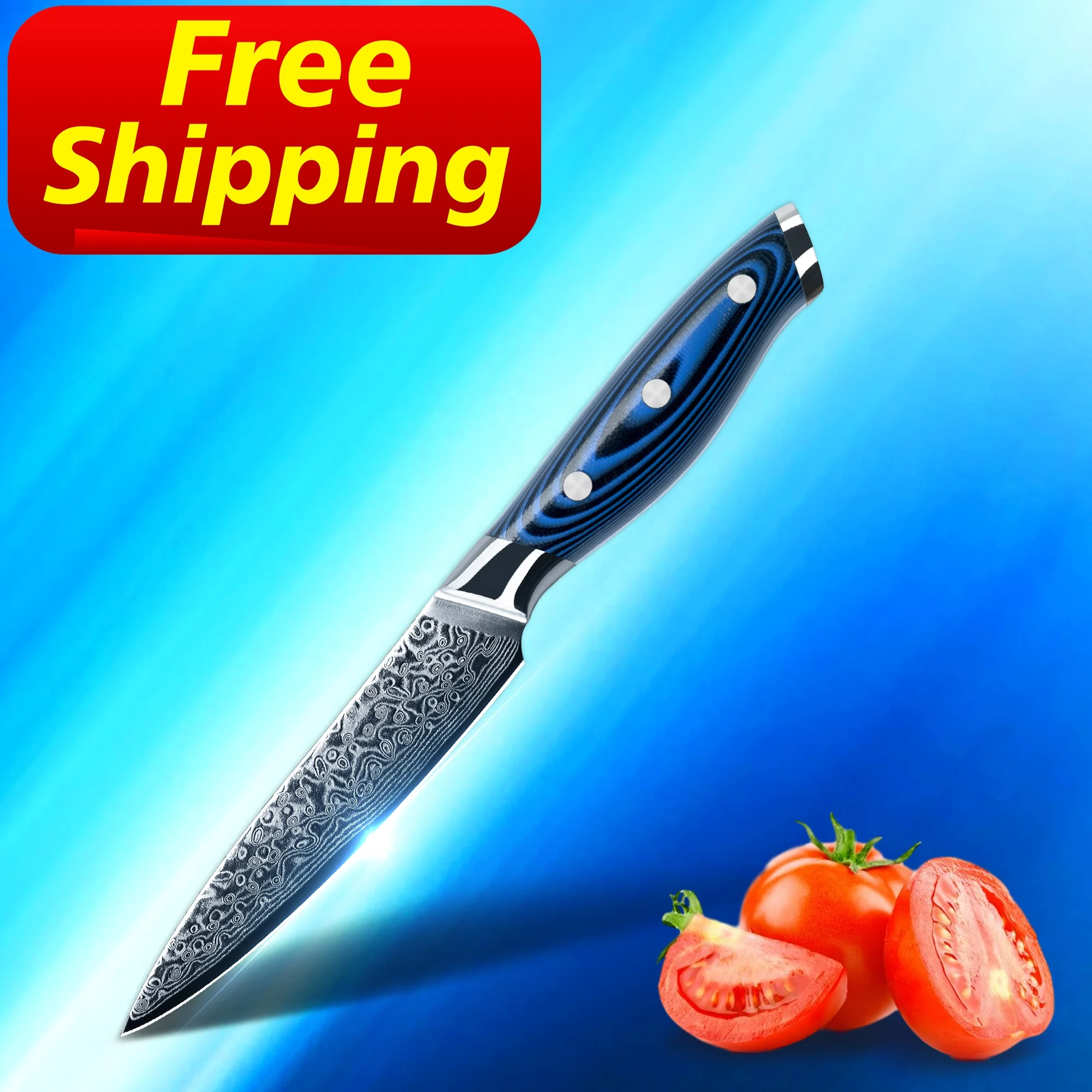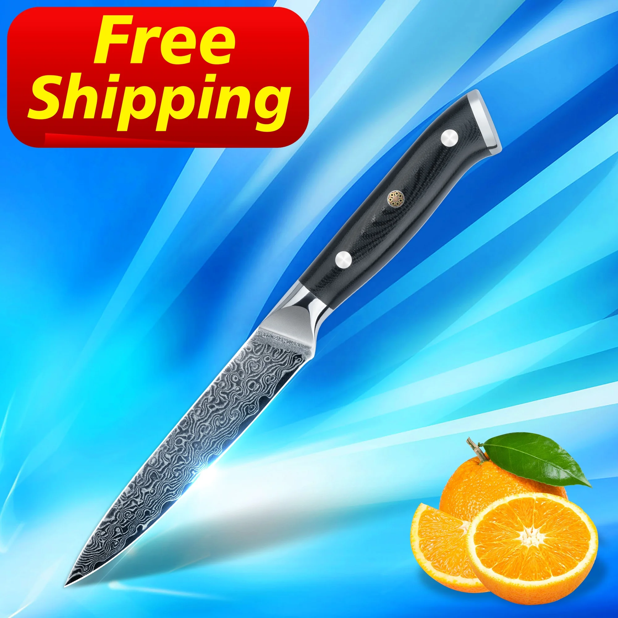Free Shipping Obsidian Black Resin 3 inch damascus small cleaver chef paring knife kitchen carving vegetable knife peeling