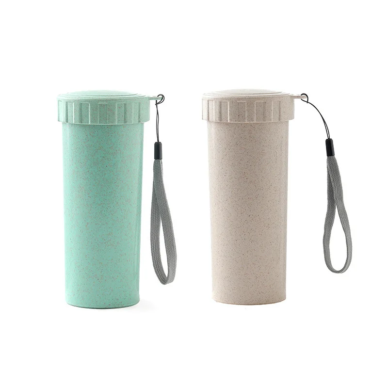 Dropshipping Plastic Wheat Straw Wash Cup Portable Toothbrush Case Container Travel Toothbrush Holder
