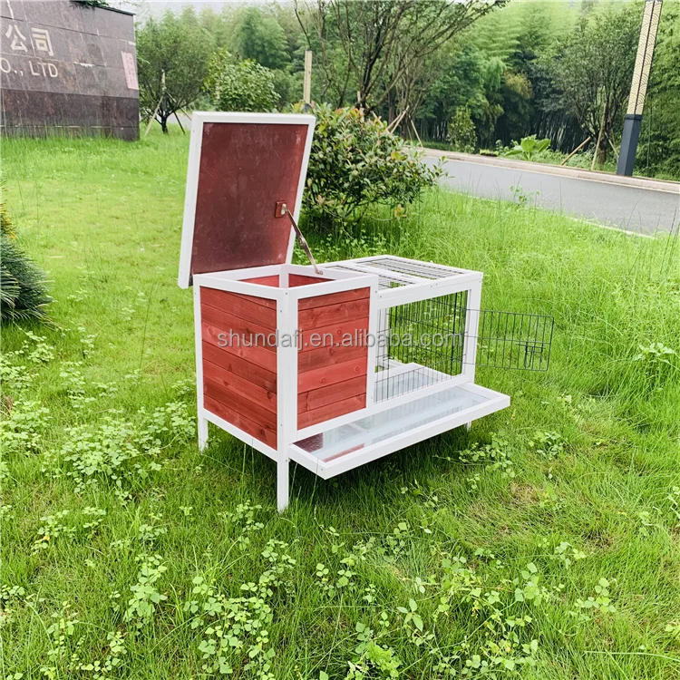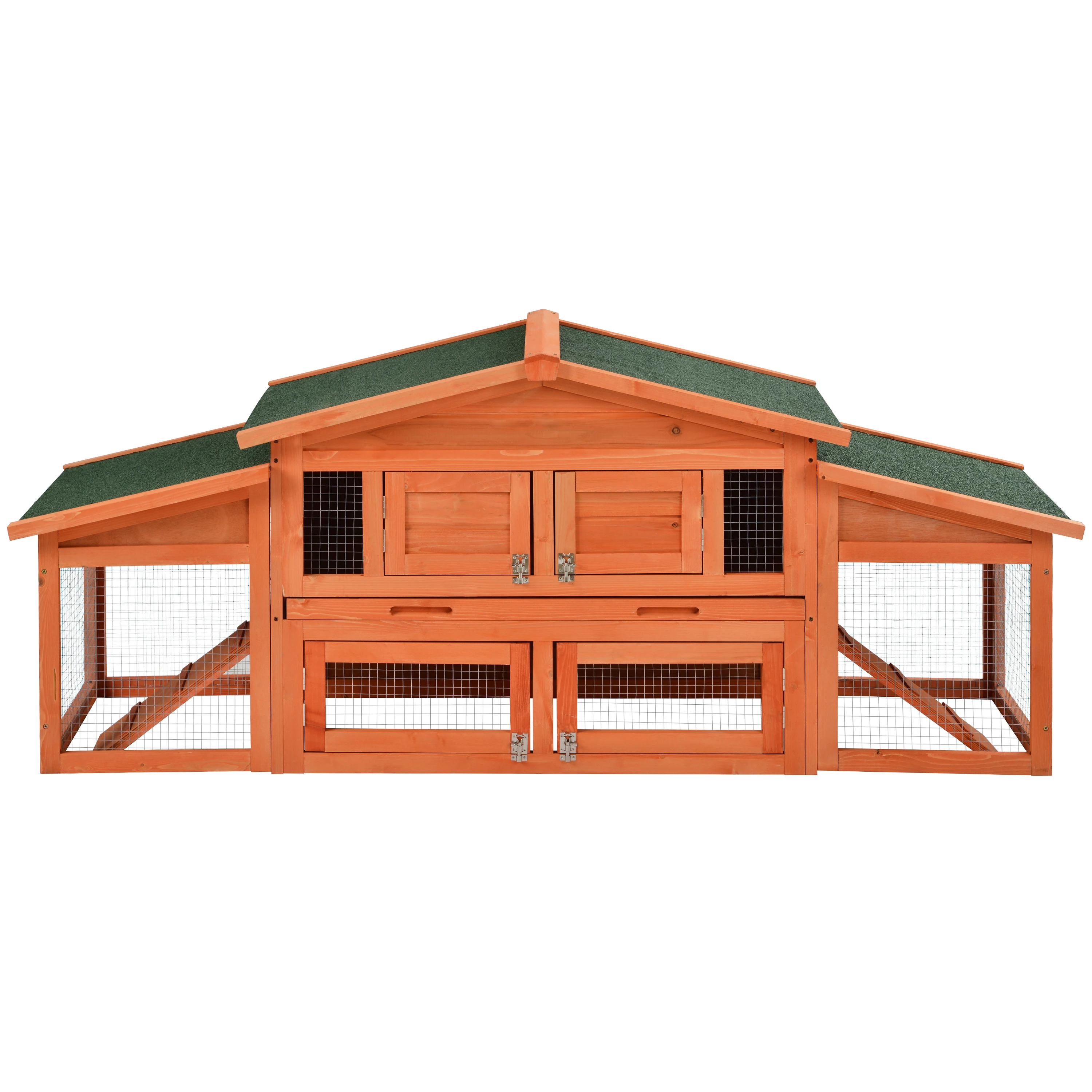 70-Inch Wood Rabbit Hutch Outdoor Pet House Chicken Coop for Small Animals with 2 Run Play Area