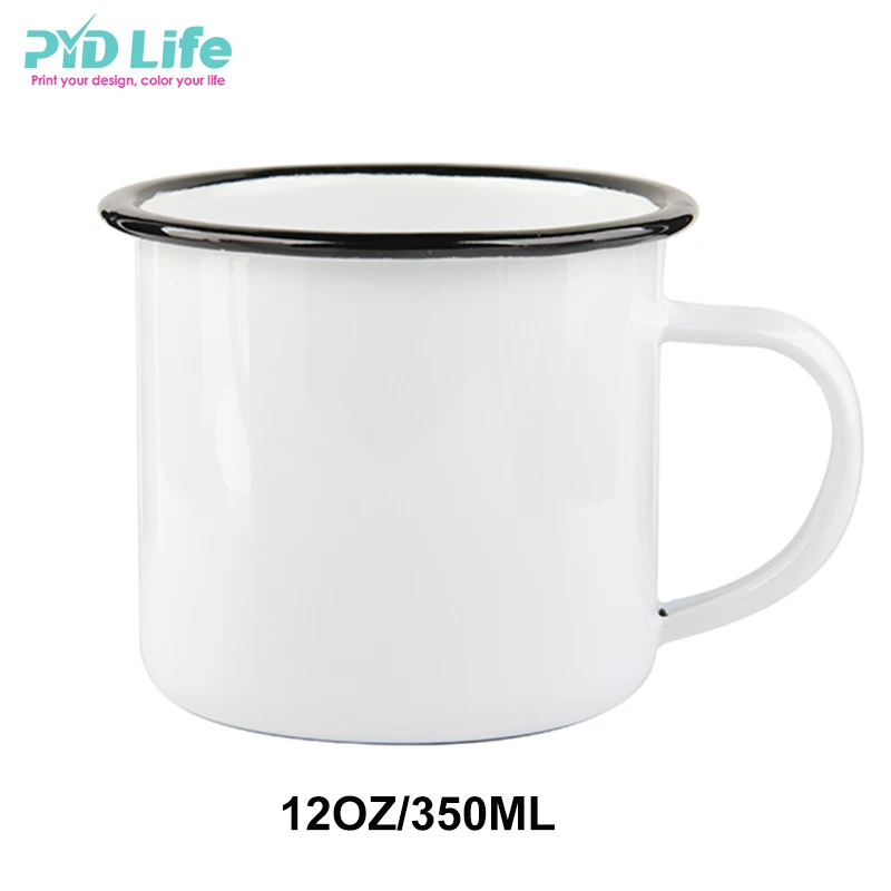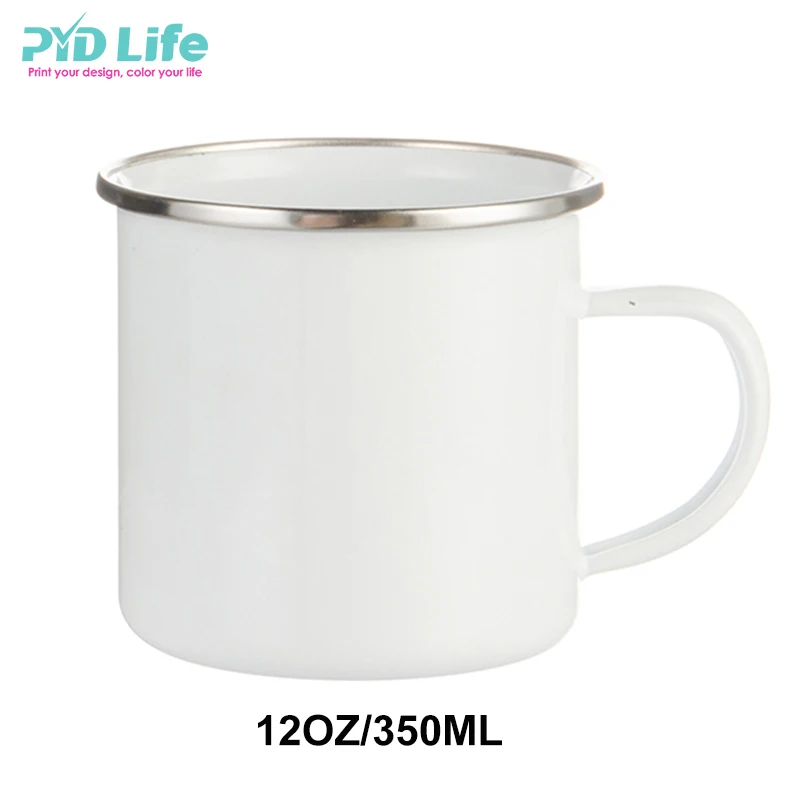 PYD Life RTS Hot Sale USA Free Sea Shipping DDP 12 oz Camping Coffee Christmas Sublimation Enamel Mug with Stainless Steel Rim