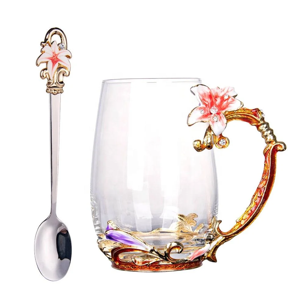 Gorgeous Clear Drinking Glass Coffee Juice Water Cup With Handle with spoon