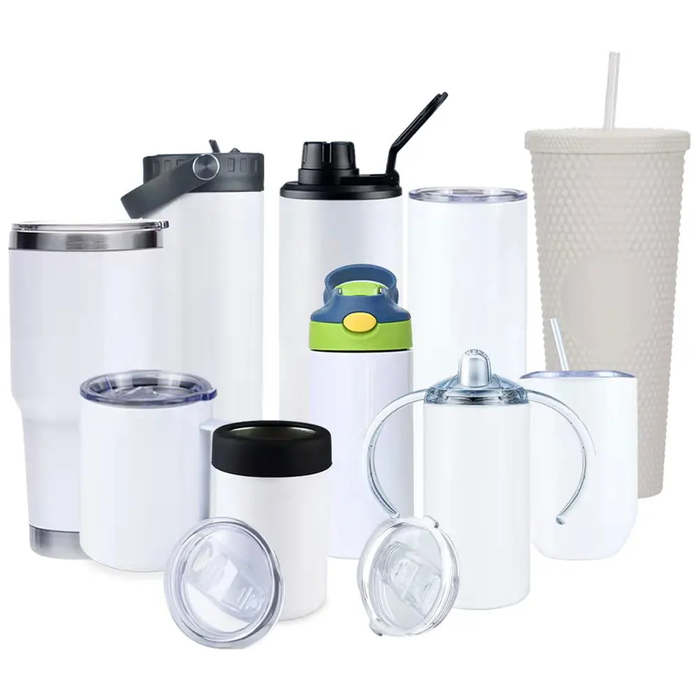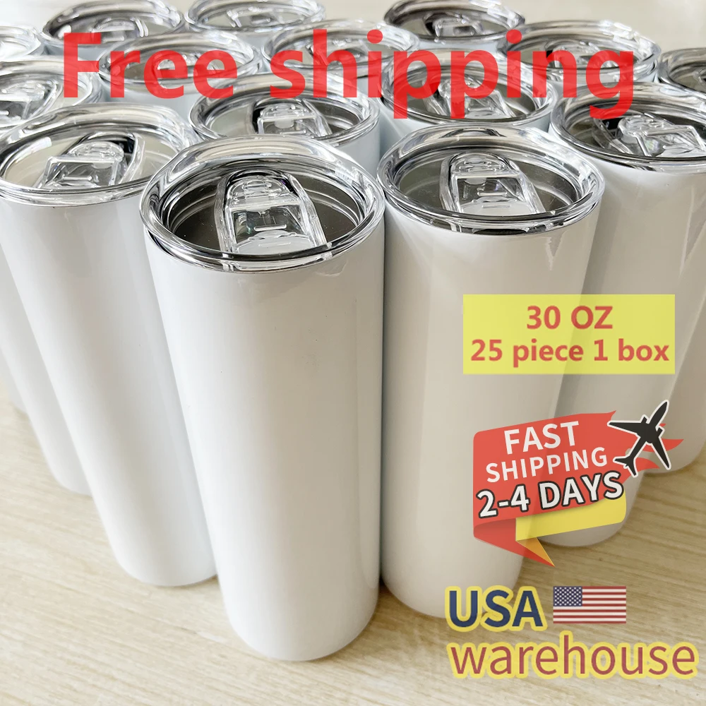 US Shipping Vacuum 20 OZ /30 OZ Stainless Steel White Blank Sublimation Tumbler Straight Cups With Straws
